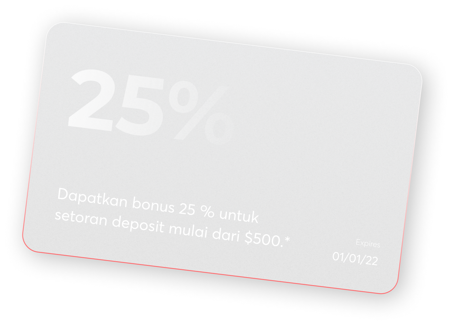 Setelah menambahkan $500 - $5000 ke akun Anda, bonus 25% akan dikreditkan dalam 2 hari kerja